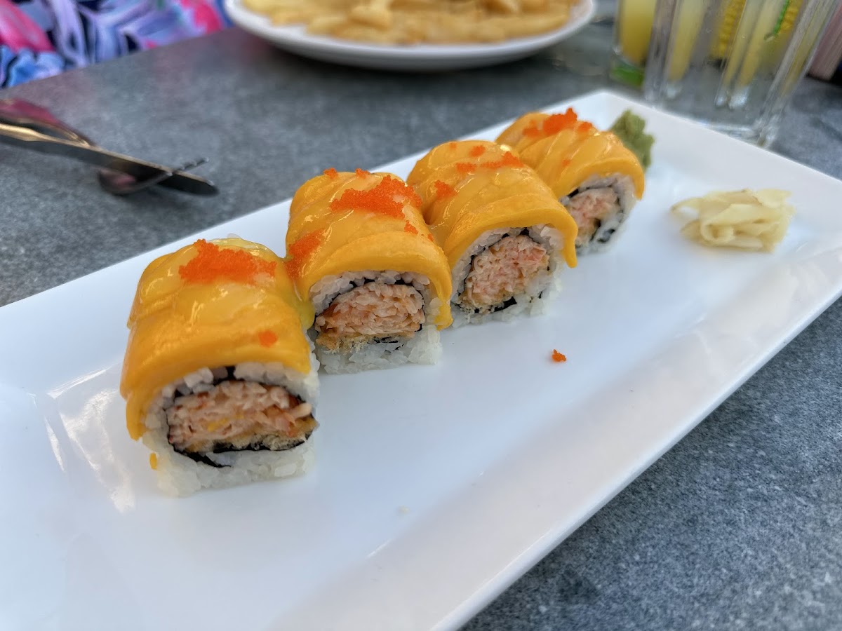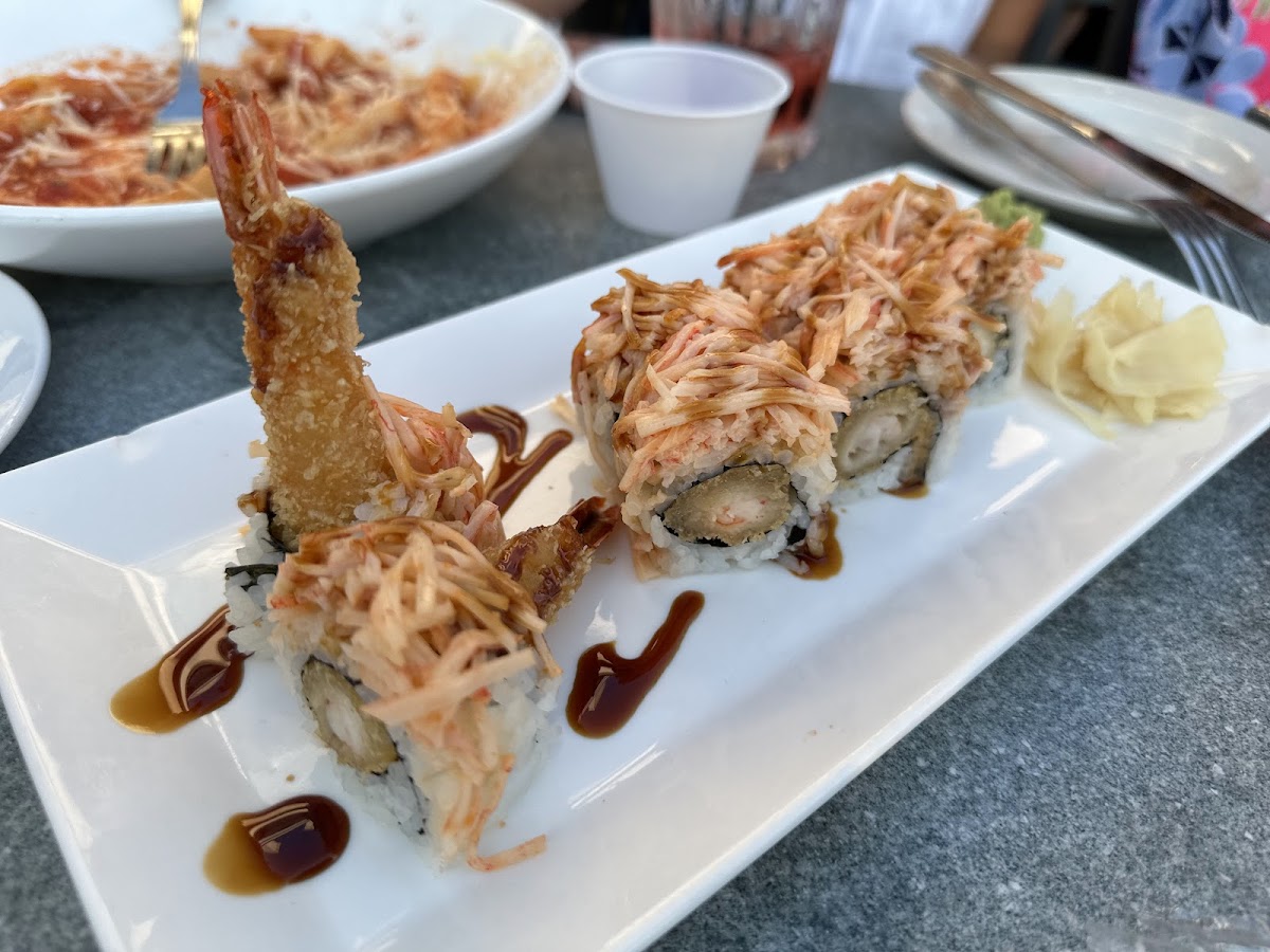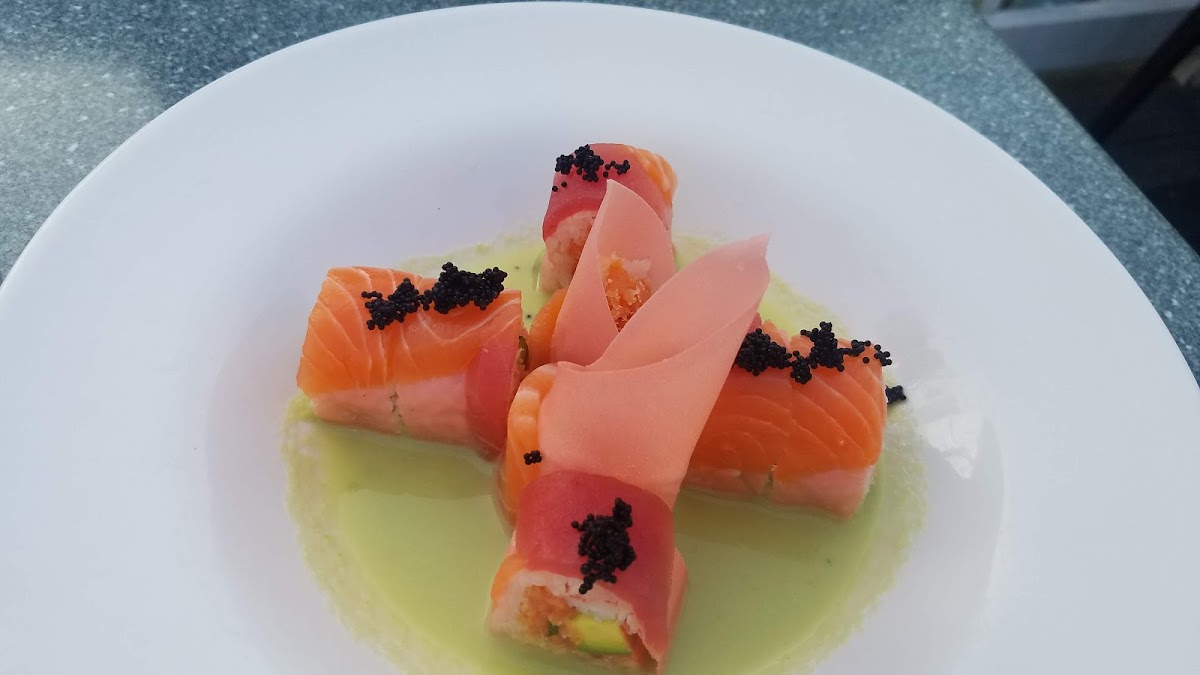 The restaurant has multiple beautiful venues both indoor and outdoor. The Chilean seabass was $40 and it came with a salad: but also, it was cooked with finesse and to absolute perfection. The Cape May Sunset sushi roll was $25, but it was outstanding, delicate and flavorful. Nice selection of cocktails, brews and wines to pair with your meal.